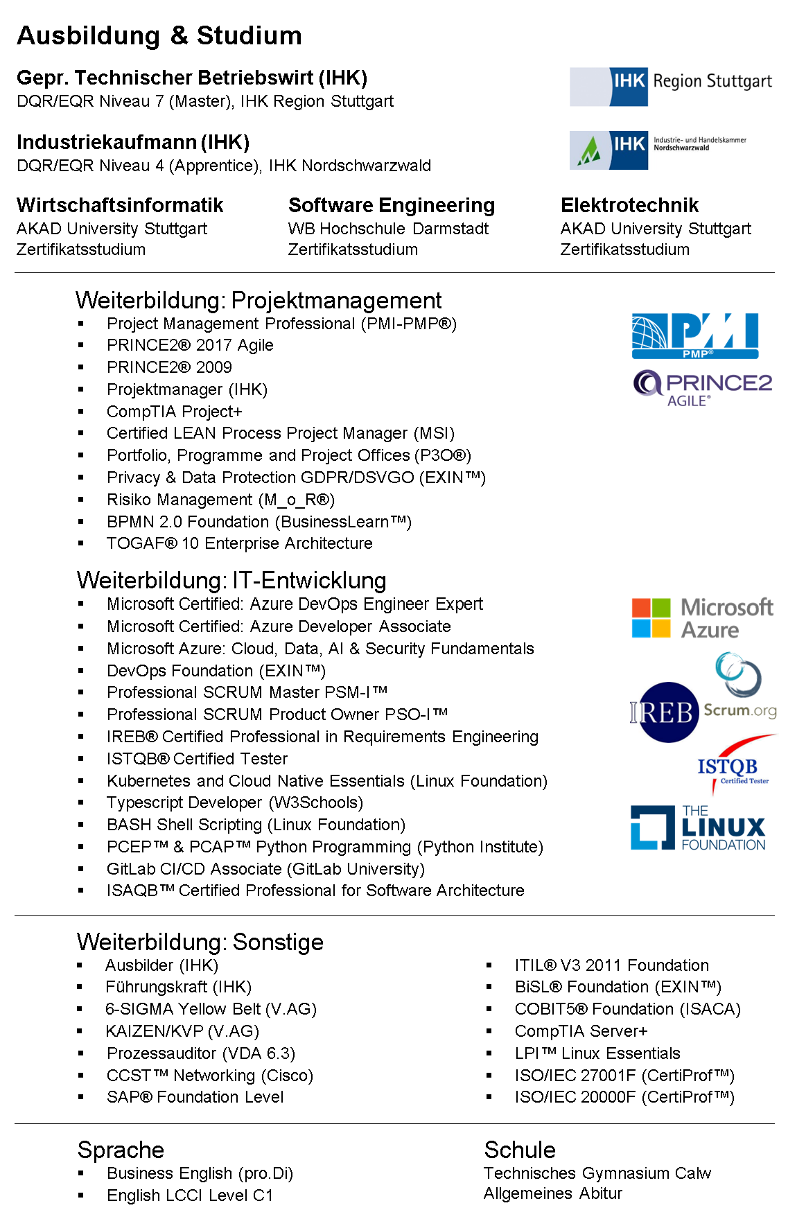 Ich habe breite technisch-betriebswirtschaftliche Erfahrung und nutze Best-Practice Verfahren.